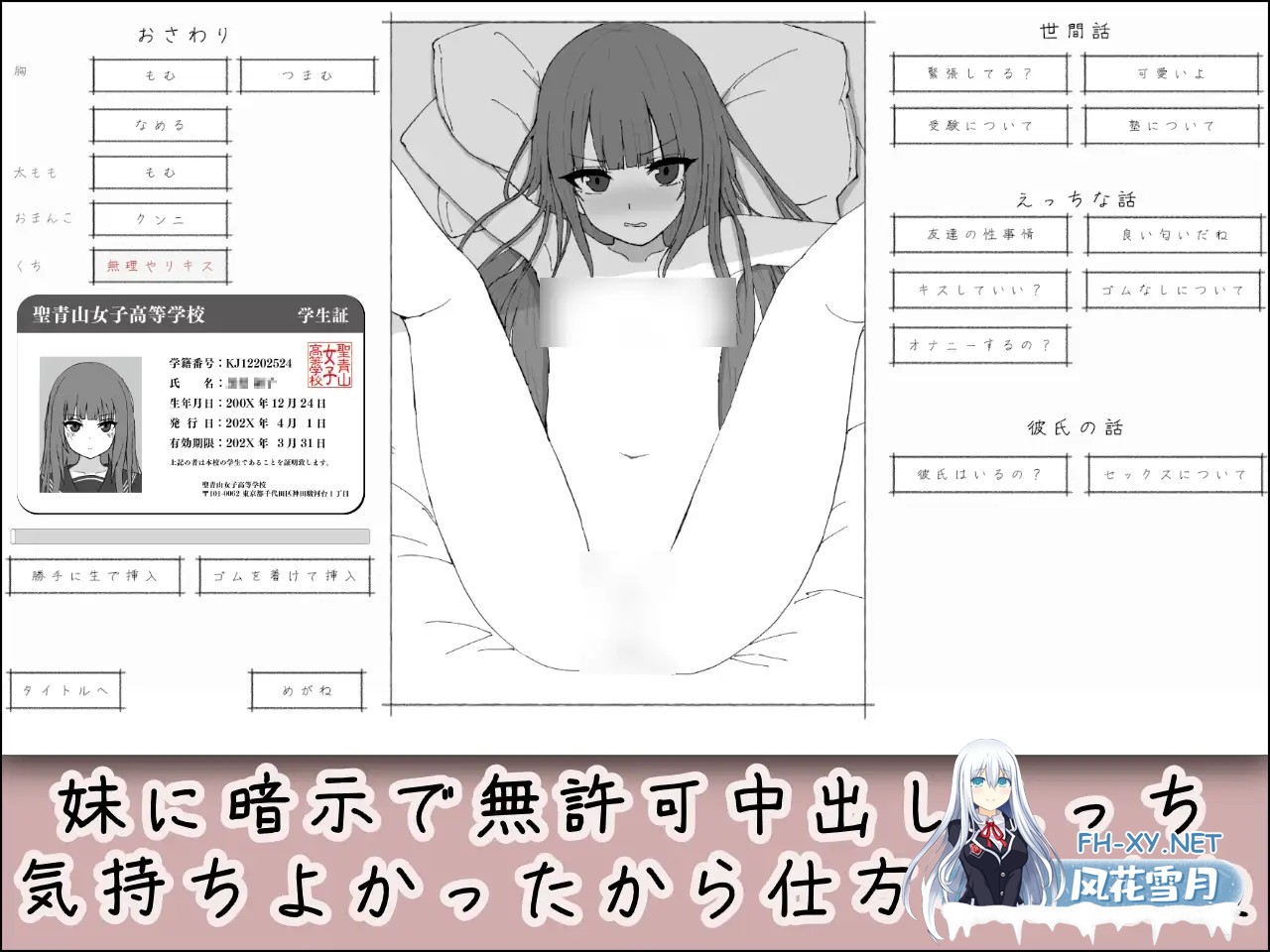 [SLG/生肉/触摸/制服/中出/怀孕][RJ01526132/黒髪プロジェクト社团]对妹妹施加暗示、未经许可内射模拟/妹に暗示で無許可中出しシミュレーション[Ver...