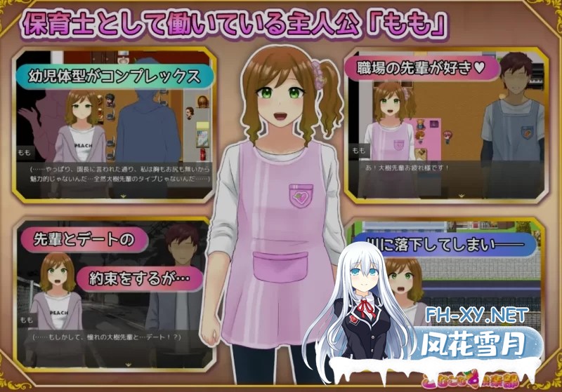游戏介绍 主角“桃”是一名保育士,性格温柔,但对自己的娇小身材和贫乳感到自卑。 她暗恋职场中的前辈, 就在恋 ...