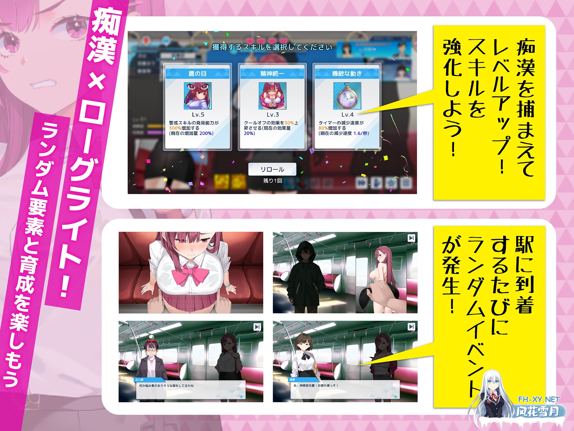 工作内容 这是一款化身为诱饵痴汉搜查官,与前来骚扰的痴汉们战斗的战斗系色情Roguelike游戏。 通过逮捕痴汉 ...