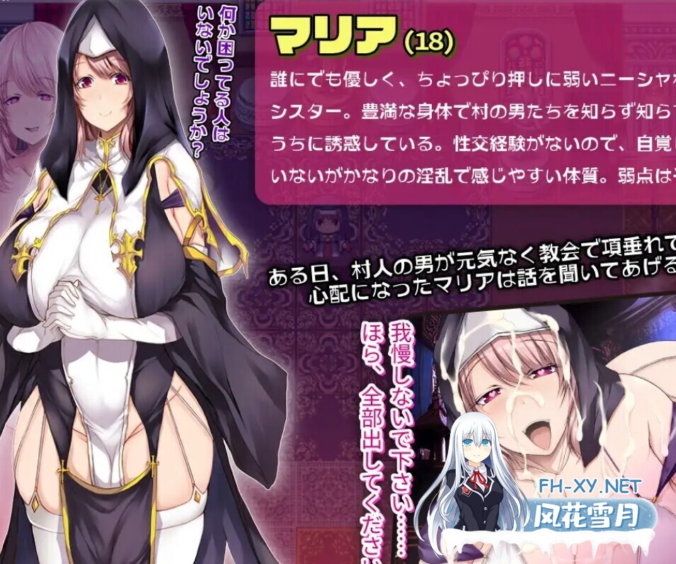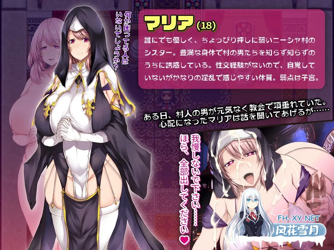 游戏介绍 在边境村庄尼莎担任修女的玛丽亚。曾经人声鼎沸的教堂,当她从王都完成修女修行归来时已变得冷冷清清…… 某 ...
